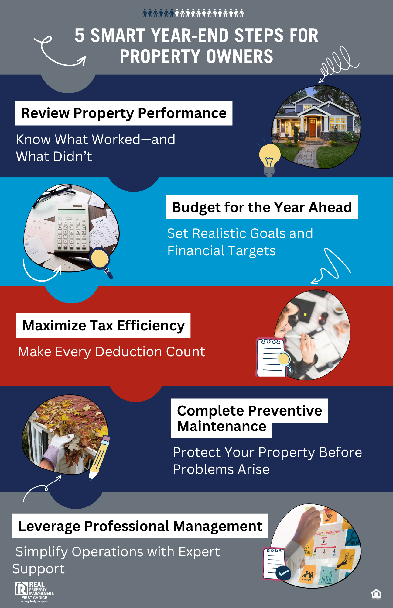 As the year draws to a close, property owners and real estate investors have a valuable opportunity to evaluate performance, make improvements, and set a clear strategy for the year ahead. The final months of the year are a natural checkpoint—an ideal time to review your financials, maintenance schedules, and management processes to ensure your investments are positioned for long-term success.